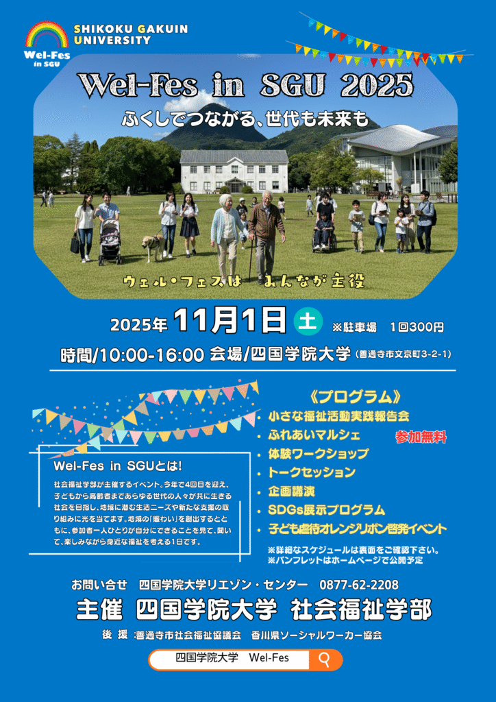 検索→「四国学院大学 、wel-fes」でアクセスしてください。詳しいパンフレットも公開されました。